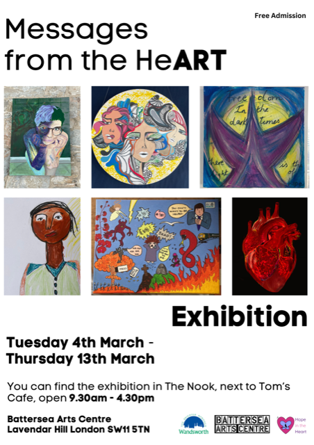 Creativity has also been a powerful tool for connection this month. At Battersea Arts Centre, Messages from the HeART, an exhibition by local social enterprise Hope in the Heart, shared stories shaped by displacement, resilience, and hope. Through art and poetry, the exhibition created space for reflection, dialogue, and understanding.